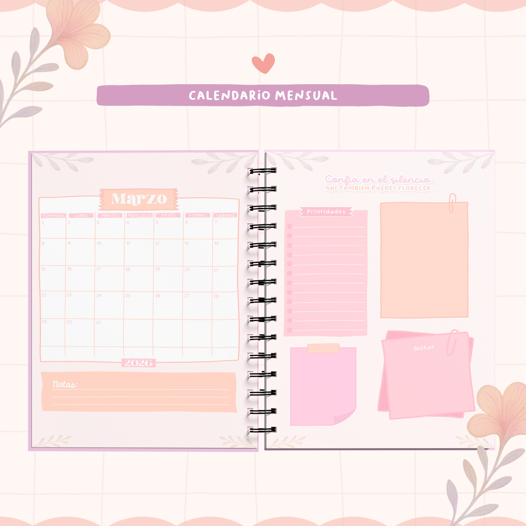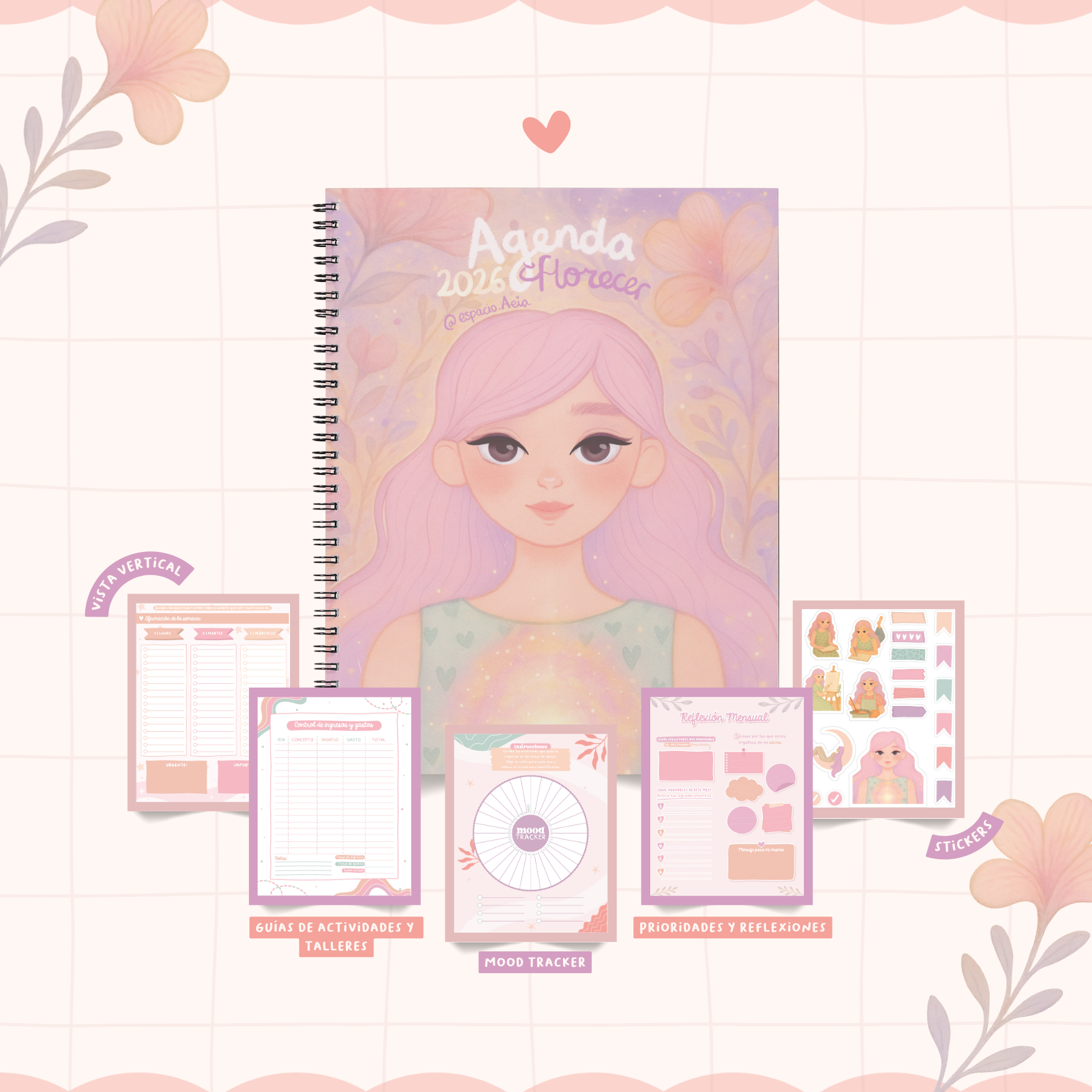 La Agenda Florecer 2026 es mucho más que un planificador: es una experiencia creada con amor por psicólogas y mujeres que creen en el poder de lo femenino, los rituales y el autocuidado consciente.
